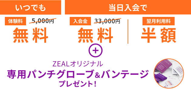 ※ 入会金&翌月会費の特典は、体験当日にご入会された場合に適応されます。