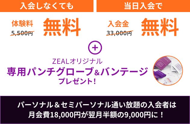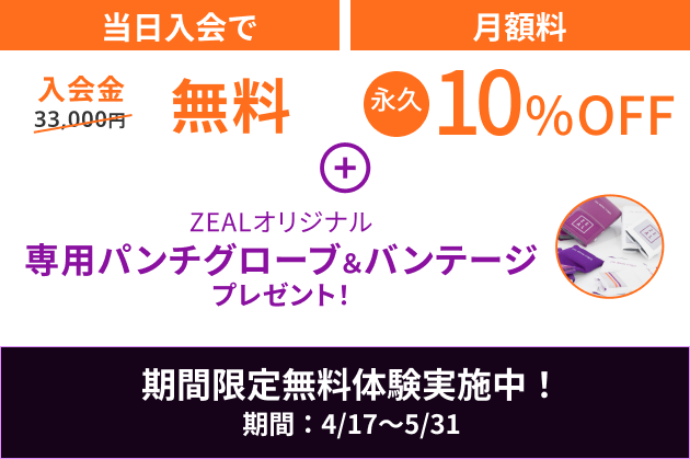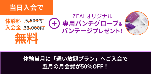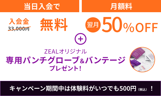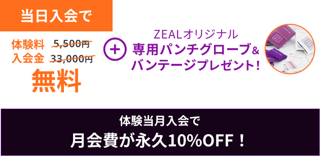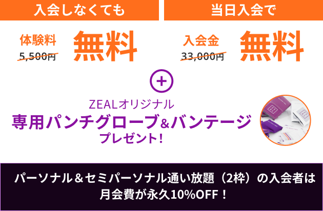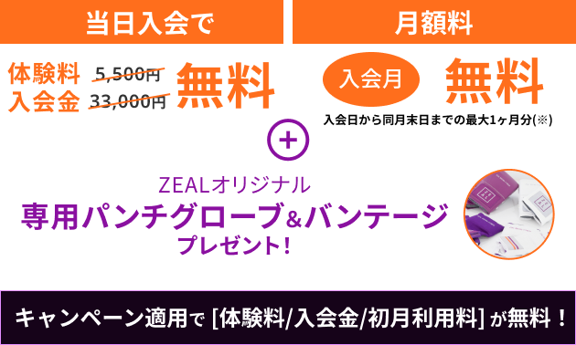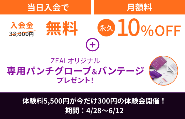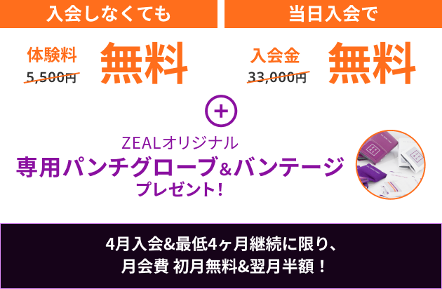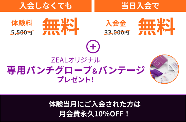 ※ 体験料&入会金特典は、体験当日にご入会された場合に適応されます。