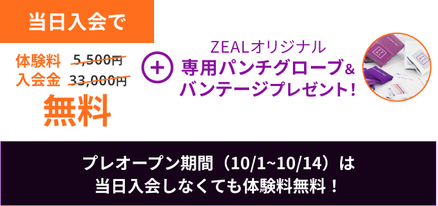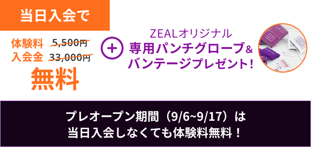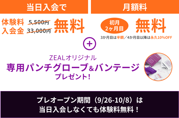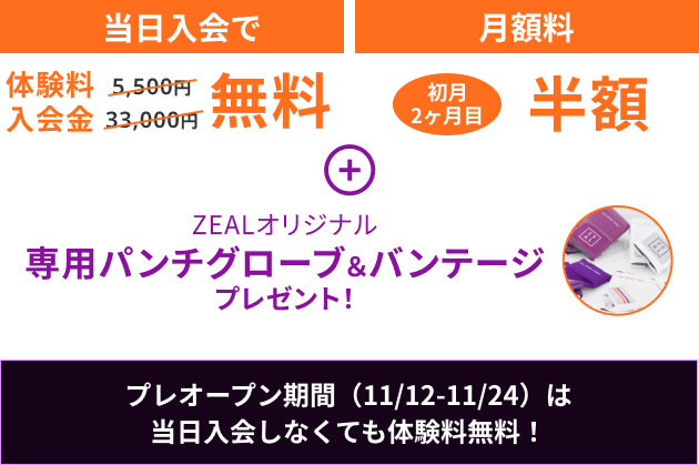 ※ 入会金&月会費の特典は、体験当日にご入会された場合に適応されます。