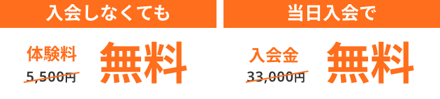 ※ 入会金の特典は、体験当日にご入会された場合に適応されます。