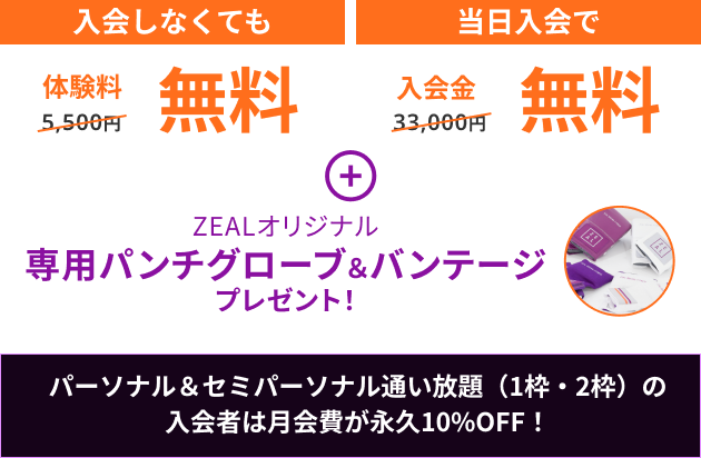 ※ 体験料&入会金特典は、体験当日にご入会された場合に適応されます。